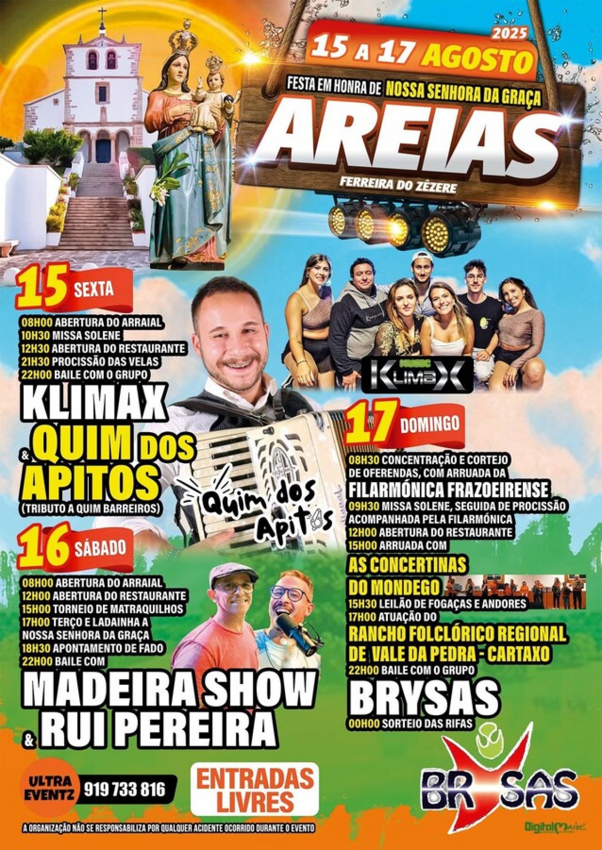 Entre os dias 15 e 17 de agosto, a freguesia de Areias ganha nova vida com a tradicional Festa em Honra de Nossa Senhora da Graça. Este momento, de grande significado religioso e cultural, é uma oportunidade de encontro entre famílias, visitantes e filhos da terra que regressam para partilhar a fé e a tradição.